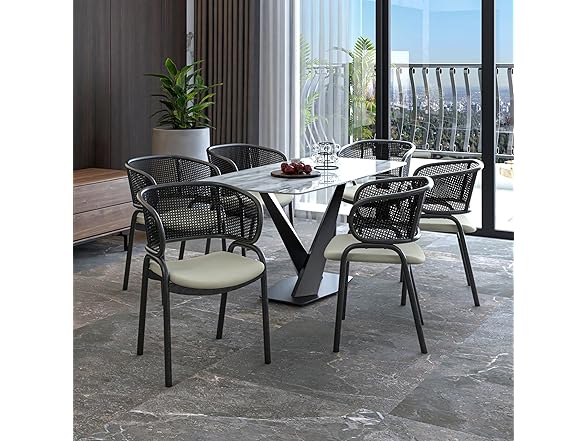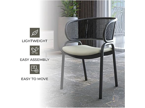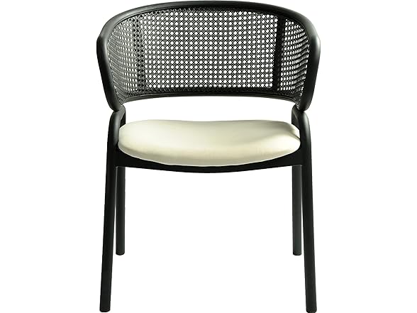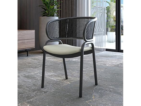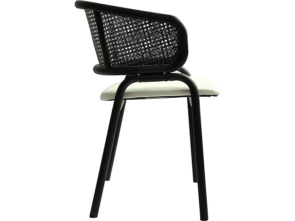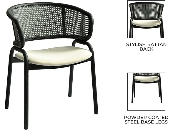 - [DESIRABLE DESIGN] Immerse yourself in the perfect blend of chic style and ultimate comfort with our stylish Ervilla dining chair. Featuring a sleek curved shape and a charming rattan back, this chair adds a unique and inviting allure to any room. The black metal frame with stiletto-inspired legs exudes modern sophistication, while the cushion seats ensure comfort during meals or gatherings.