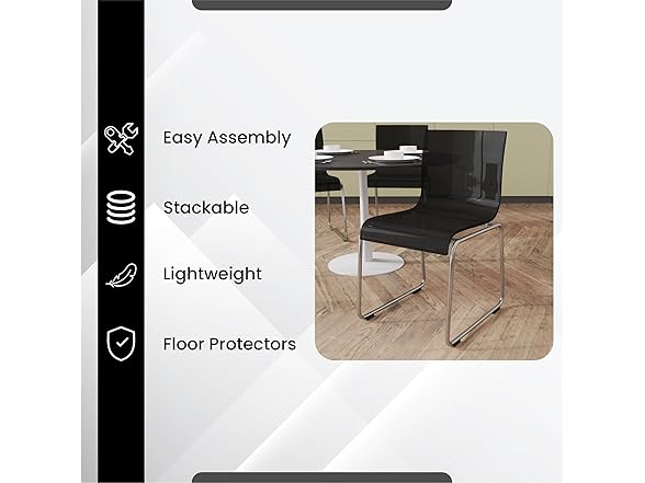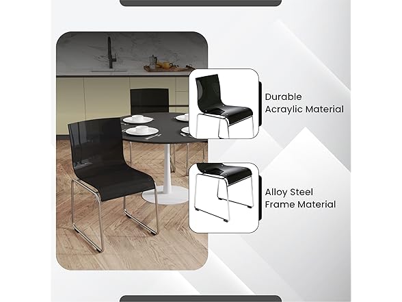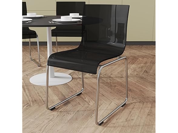 LeisureMod Lima Modern Acrylic Chrome Base Black Dining Side Chair