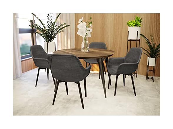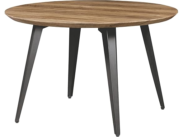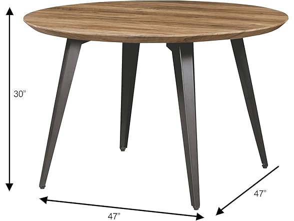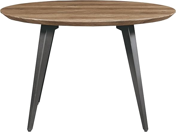 LeisureMod Ravenna 47" Round Dining Table for 2-4 People, Wood MDF Top with Sturdy Black Metal Legs for Modern Home, Dining Room, and Kitchen Use (Dark Brown)