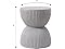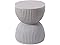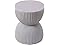 - [HOURGLASS DESIGN] This side table features an hourglass shape, where two curved sections meet at a narrower center, creating a balanced form with a wide top and base. The sides have ribbed texture that is made of evenly spaced vertical lines that add detail to the table’s overall appearance. The smooth, round top contrasts with the textured sides, offering a flat surface for use.