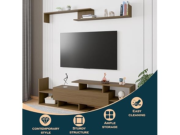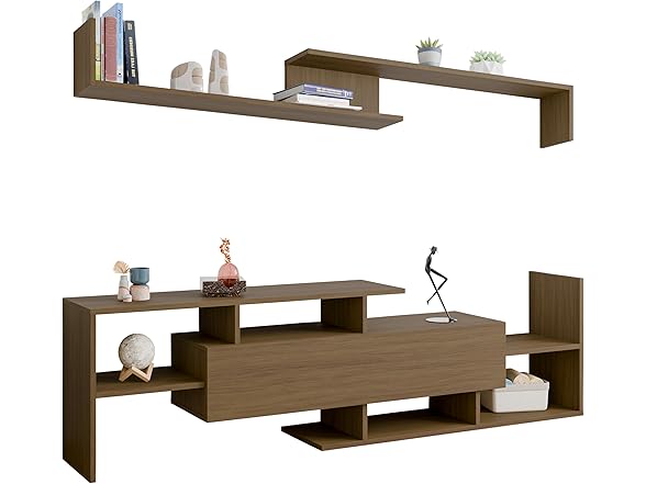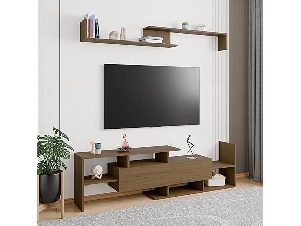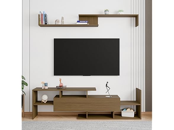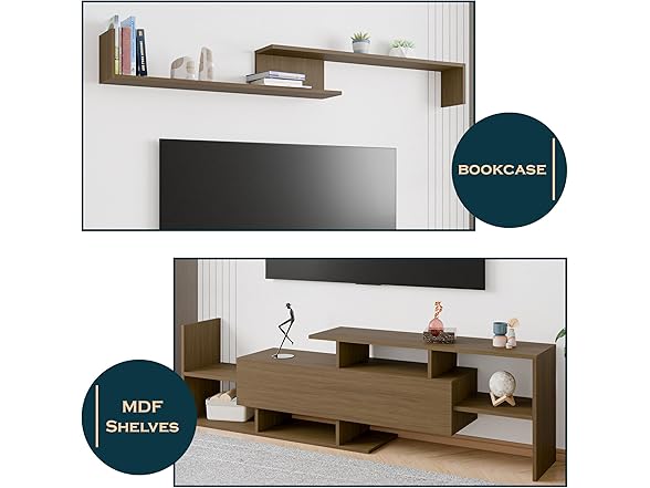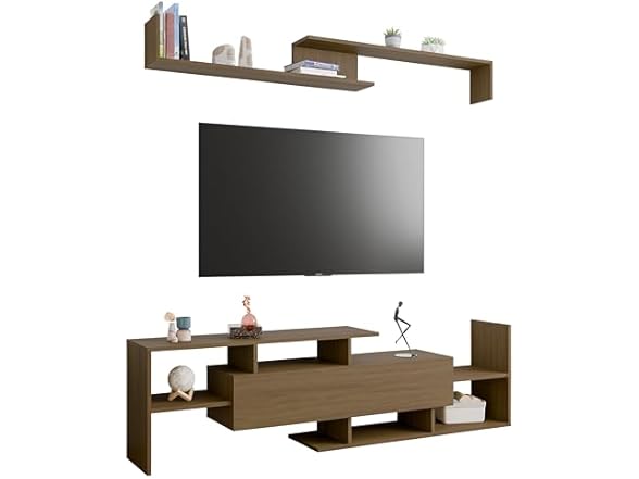 LeisureMod Surrey 60" TV Stand Stained MDF, Mid-Centuyry Modern Entertainment Center with Upper and Lower Shelf TV Console and Large Enclosed Drawer for Modern Home, Living Room (Oak Wood)