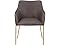 - This modern dining chair features a continuous design where the backrest, armrests, and seat are fully connected. The curved backrest smoothly transitions into the armrests, creating a single, solid structure. The gold legs have corner-mounted supports that extend upward to grip the seat at each corner. These supports enhance the chair's stability and give it a modern, visually appealing design.