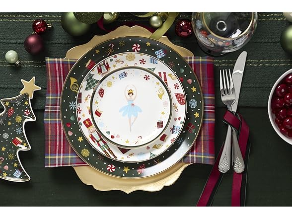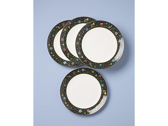 Lenox Dinnerware Set, Nutcracker Ballet Dinner Plate, Service for 4, Porcelain Plates, Microwave & Dishwasher Safe, Pasta & Salad, Christmas Decor, Christmas Nutcracker Theme (Multicolor, 4 Pieces)