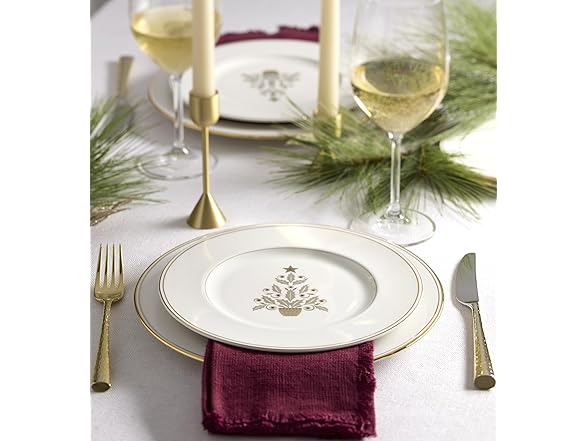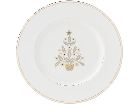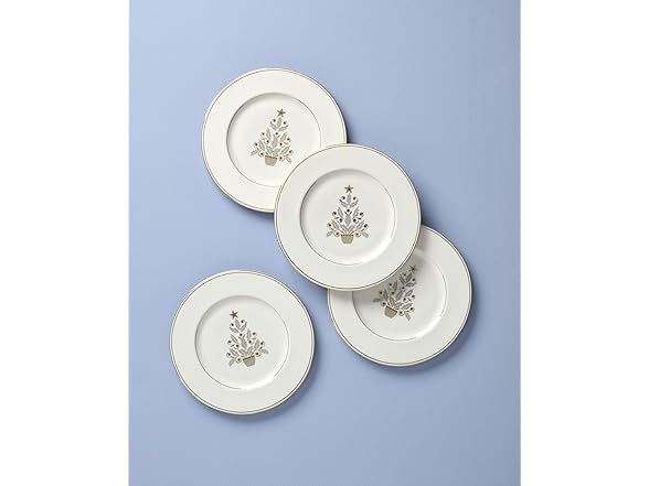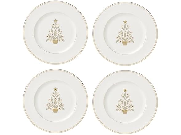Lenox 897867 Federal Gold Tree Accent Plates, Service For 4, Christmas Dishes, Dinnerware Set, Holiday