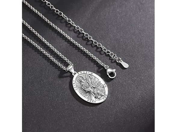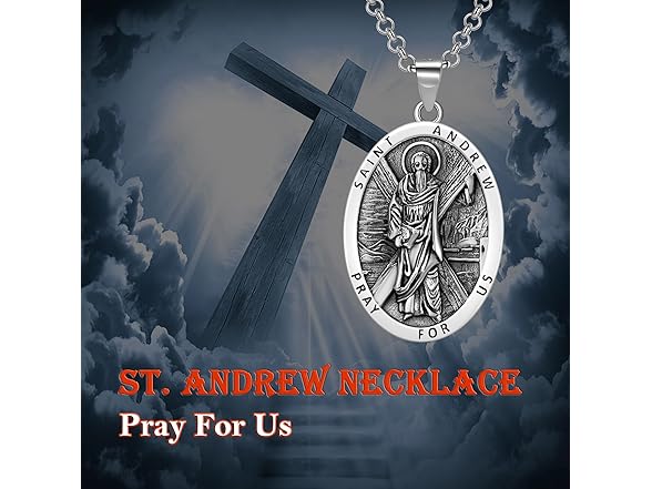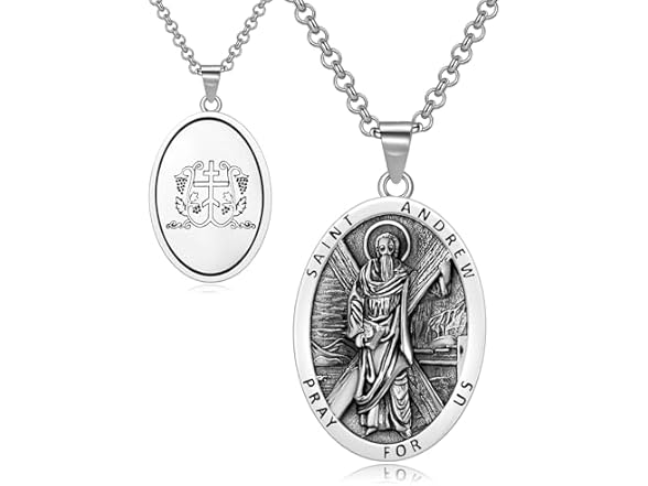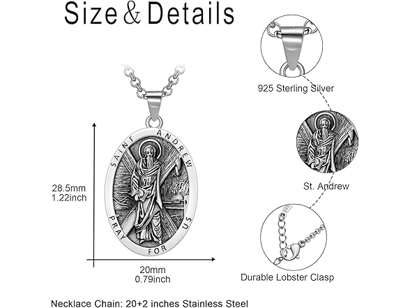 LES OSEWA Saint Andrew Necklace Sterling Silver St Andrew Apostle Medal Necklace for Men Women Pendant Jewelry