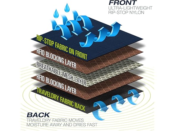 - TRAVELDRY TECHNOLOGY - The special TravelDry fabric wicks away moisture as well as resists odors and shrinking, keeping you comfortable while on the move