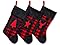 - DESIGN: 18" tall set of 3 large premium felt stockings. Each stocking comes in a black and red plaid design and features a classic Christmas object such as a Christmas Tree, Star, and Reindeer. These stockings are sure to put your family in the Christmas spirit in no time.