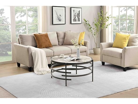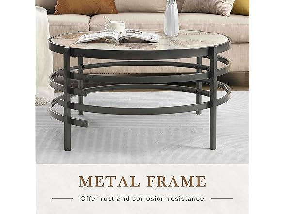 - Low Maintenance and Durable: Easy to care for, this round marble coffee table features a non-porous surface that's simple to clean with a quick wipe. The combination of a durable metal base and a high-quality faux marble top ensures your stylish, contemporary furniture remains a timeless feature in your home.