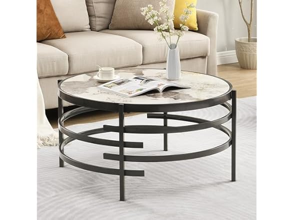 - Elegant Round Faux Marble Top: Elevate your living room with LifeSky's modern circular table, featuring a chic, rounded faux marble top. Its sleek, neutral design adds a touch of glam to your home, while being practical for daily use – from dining to decor display, all in a scratch resistant, easy to wash surface.