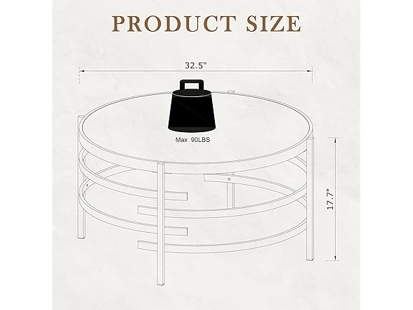 - Sturdy Golden Metal Base: LifeSky round coffee table's golden frame base combines metal strength with contemporary finesse. This robust, hammered metal design offers stability and a light, stylish look, ensuring your table remains a centerpiece in modern living spaces for years to come.