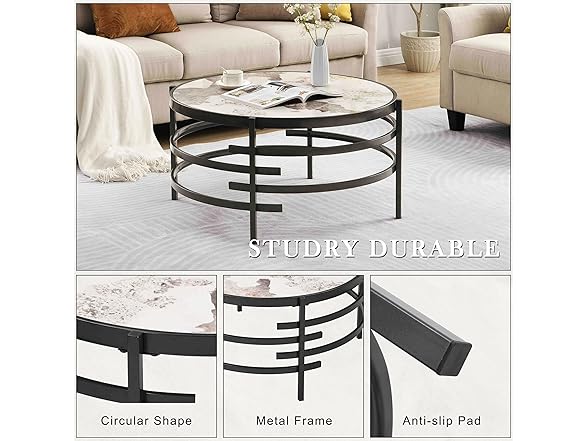 - Safe and Stylish Round Design: Designed with family safety in mind, this mable coffee table's rounded edges prevent accidents, making it a safe addition to any room. Its circular shape not only looks modern and glamorous but also enhances the usability of your living room.