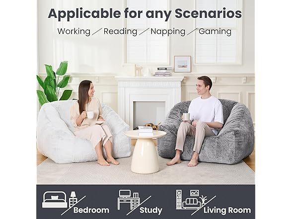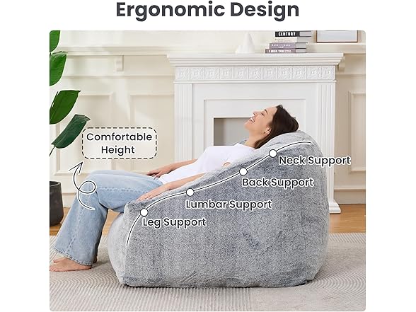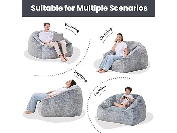 - Durable: Crafted with soft faux fur fabric, this bean bag chair pairs durability with style. Reinforced stitching and puffy filling ensure it withstands daily use, whether as a bean bag chairs for adults in the living room, a bean bag couch for movie nights, or a cozy chair for late-night reading.