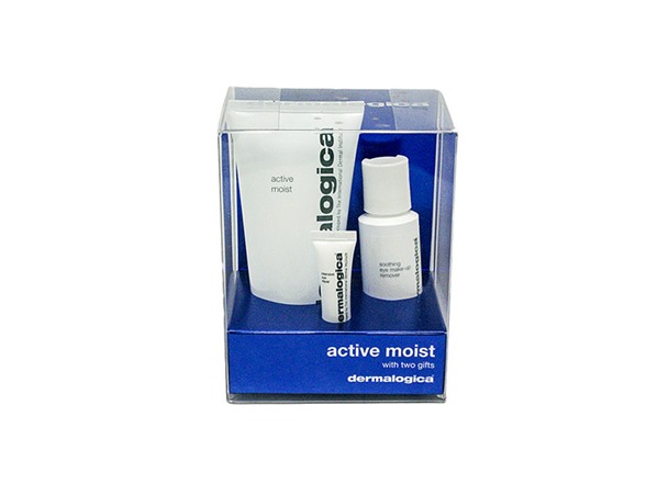 Dermalogica Limited Edition Set - Active Moist restores balance and youthful vitality to skin as it controls oil production. Naturally astringent extracts of ivy, lavender, burdock root and sage tone and purify your skin to prevent breakouts and stabilize pH levels. Silk amino acids and hyaluronic acid hydrate and firm to minimize fine lines and eye wrinkles for radiant skin clarity.