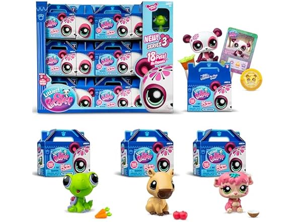 Get ready for the ultimate unboxing adventure with the Littlest Pet Shop Series 3 Pet Surprise Display! This set includes an incredible lineup of 18 unique bobblin’ pets, each tucked into its own surprise box just waiting to be opened and revealed. With pets numbered from #131 to #148, this collection brings an adorable variety to expand your LPS Crew in the cutest way. Every bobblin’ pet in this set also comes with its own colorful accessory, adding extra flair and fun to playtime. And the excitement doesn’t stop there! Each pet comes with a collector card showcasing its personality, level, and rarity—will your pet be the sassiest, fanciest, or something else? Plus, each box includes a special coin with a code for unlocking digital surprises, from coins and gems to digital accessories that bring even more Littlest Pet Shop magic to your virtual play experience. Perfect for collecting, trading, and endless imaginative adventures, the Series 3 Pet Surprise Display is every LPS fan’s dream come true! Makes a great gift for kids and collectors ages 4 and older.