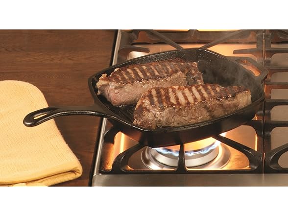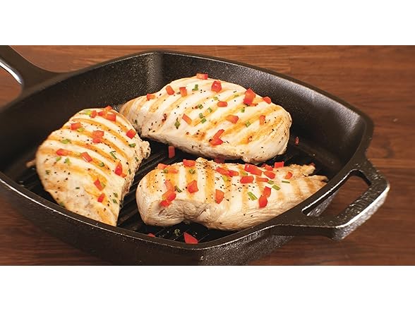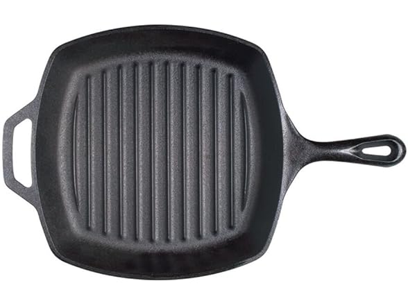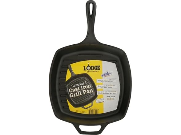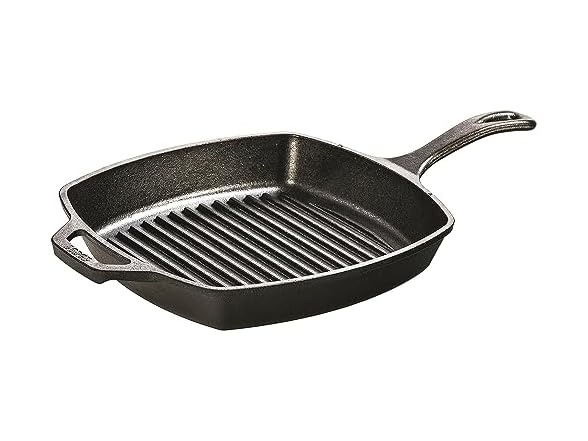 Lodge 10.5 Inch Pre-Seasoned Cast Iron Square Grill Pan - Signature Teardrop Handle & Assist Handle - Use Grill Pan in the Oven, on the Stove, on the Grill, or Over a Campfire - Black