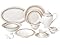 - COMPLETE SET: 57-piece bone china dinnerware set includes service for 8 with dinner plates, salad plates, soup bowls, cups, saucers, and serving pieces