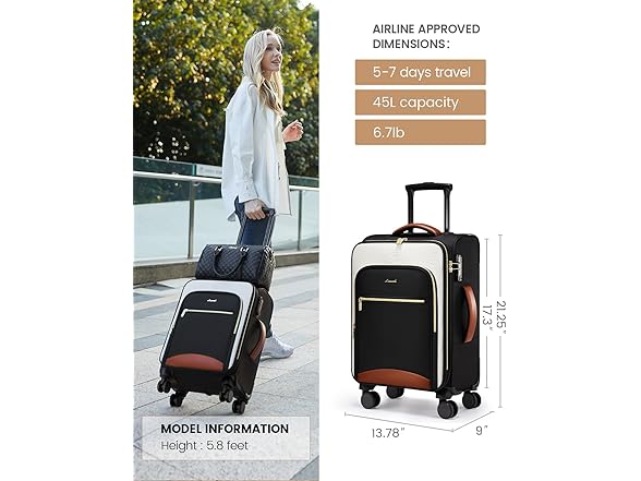 LOVEVOOK Carry On Luggage Suitcase 22x14x9"