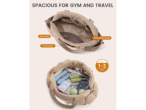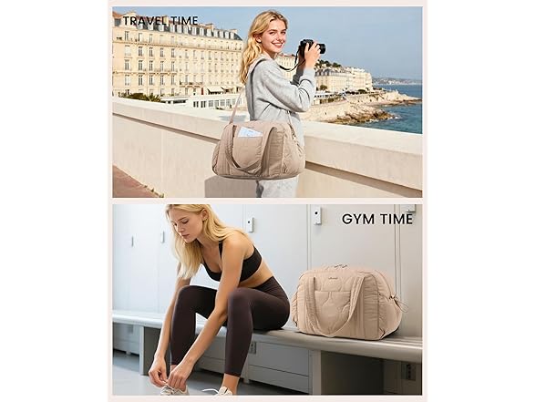 LOVEVOOK Puffer Travel Bag for Women, Khaki