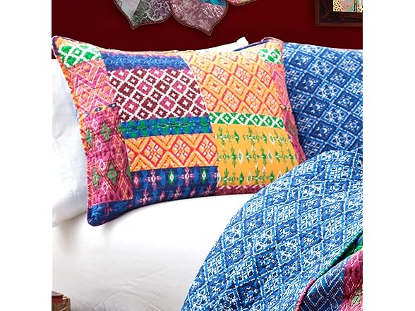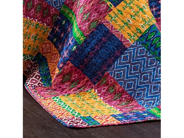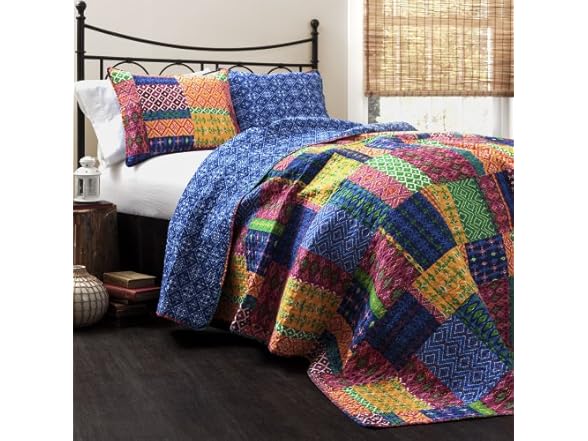 Lush Decor Misha Reversible Cotton Quilt Queen Size 3 Piece Set Full/Queen Fuchsia & Navy - Queen Bedding Set - Colorful Patchwork Quilt - Boho Decor