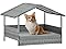 Lyromix Wicker Dog House with Canopy, 32" Outdoor Elevated Rattan Dog Bed with Water-Resistant Soft Cushion, Large Outside Raised Dog Shelter for Small, Medium Dogs, Gray