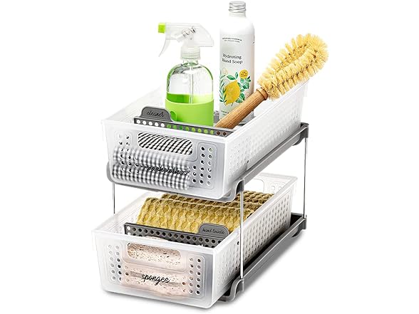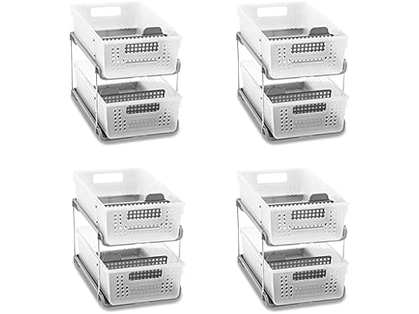 madesmart Antimicrobial 2-Tier Organizer, Multi-Purpose Slide-Out Storage with Handles and Dividers for Home and Bath, Frost, Pack of 4