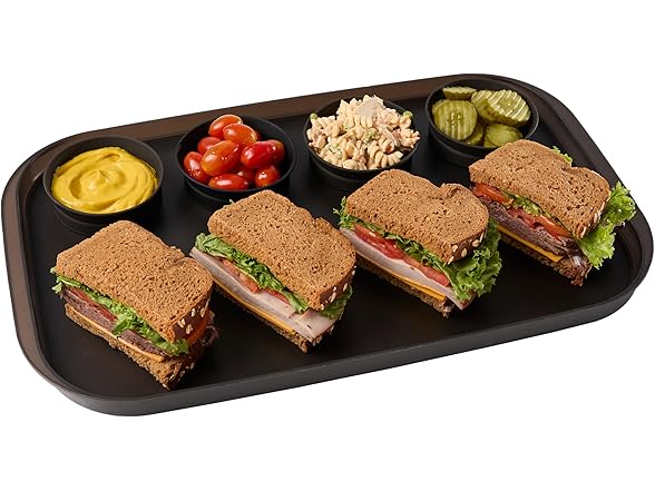 madesmart Dipware Family Style Serving Tray 4-Bowl Plate for Gameday and BBQs, Football Serving Tray, Stackable & Removable Bowls, Dishwasher & Microwave Safe, Reusable Plate, Carbon