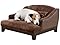 This luxurious pet bed is upholstered in high quality velvet with a coordinating bolster pillow and accented with pebble grain faux-leather. Perfect for the dog who loves to curl up to sleep. The Madison is raised off the floor with 2-inch legs, keeping your pet draft free.