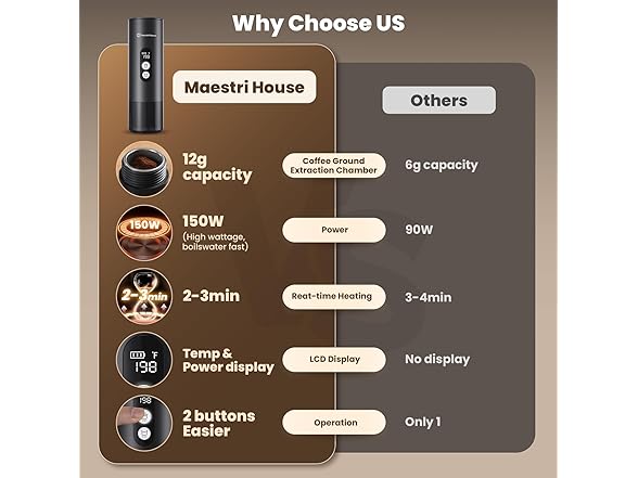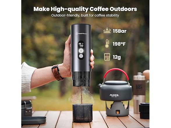 - Enjoy High-quality Coffee Outdoors: Free to choose between hot brew or cold brew outdoors. With just one 150W portable espresso machine and one hand, you can quickly savor high-qualified coffee anywhere. Compared with other traditional electric coffee makers, there's no need to hold a portable espresso machine while extracting espresso. The teas cup is also a holder, conveniently keeping you hands-free.