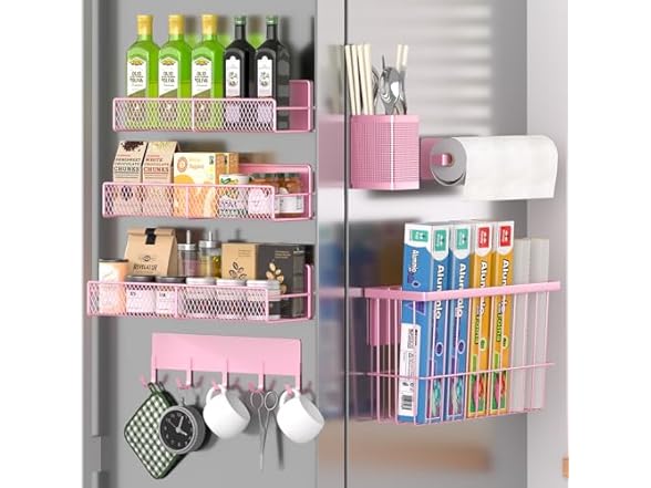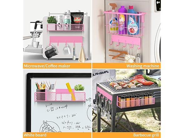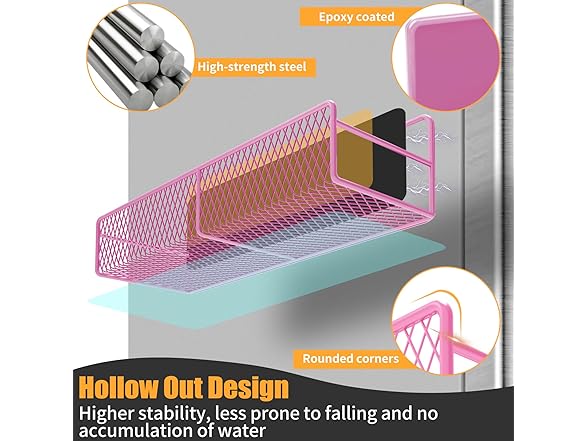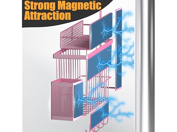 - Strong Magnets, No Drilling Needed. Powerful rubber magnets on the back hold tight to your fridge, washer, or any metal surface – even when fully loaded. No tools, no hassle – just stick and go. Perfect for renters or anyone who loves a quick setup.