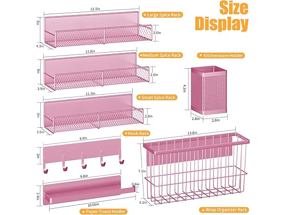 - 7-Piece Magnetic Kitchen Helper. Your all-in-one storage solution with 1 extra-large + 1 large + 1 medium spice rack, 1 paper towel holder, 1 utensils cylinder, 1 hook rack and 1 cutting board holder. Perfect for organizing spices, towels, and kitchen tools in one go.
