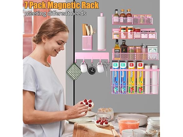 DTUQYX 7 Pack Metal Magnetic Shelf, with a strong magnetic sheet on the back, which can be adsorbed on the metal surface without installation. A great space-saving solution for kitchens. It can be applied to refrigerator, microwave, washing machine, coffee machine surface to create storage space.