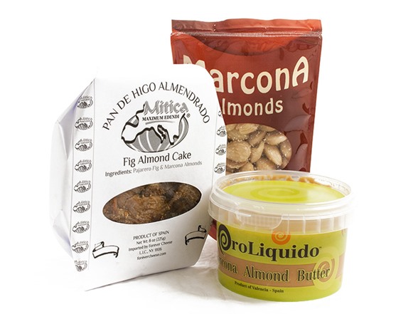 - Fig Almond Cake by Mitica: Mitica Fig Almond Cakes are made only with premium whole Pajarero figs and Marcona almonds. These cakes are the perfect accompaniment to any cheese tray. (8 oz)