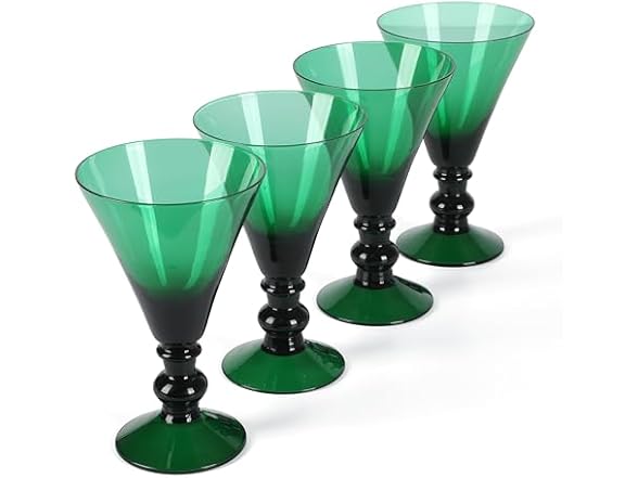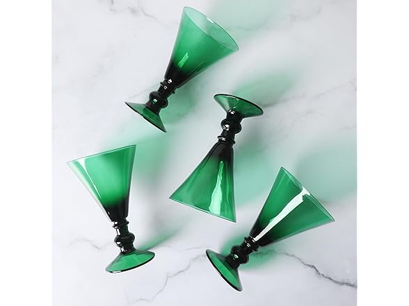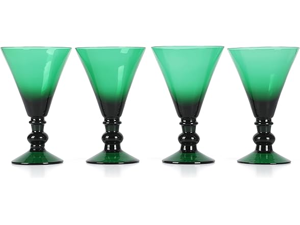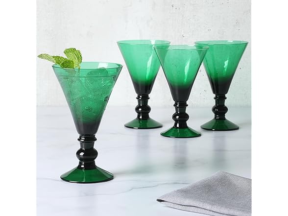 Martha Stewart Crispa 4 Piece 10 Ounce Goblet Martini Handmade Glassware - Jade Green