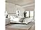 Martha Stewart Jett Platform Bed with Headboard, Fabric Upholstered Inset Headboard and Base, Solid Wood Frame, No Box Spring Needed, King, Dark Brown/Beige