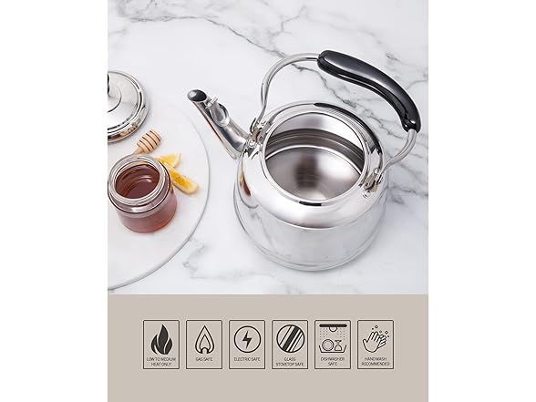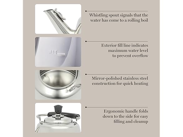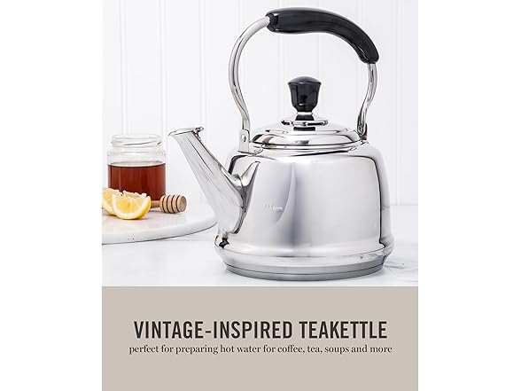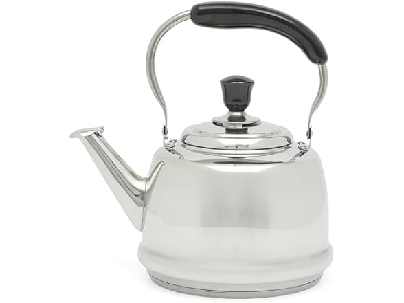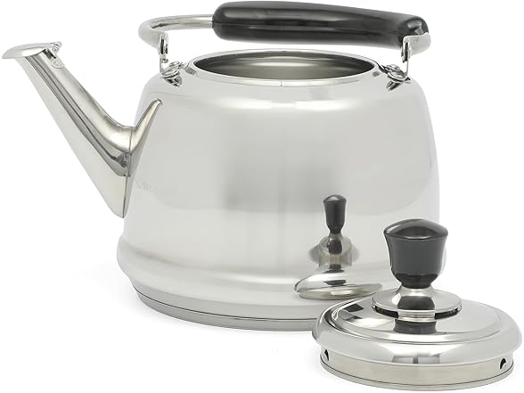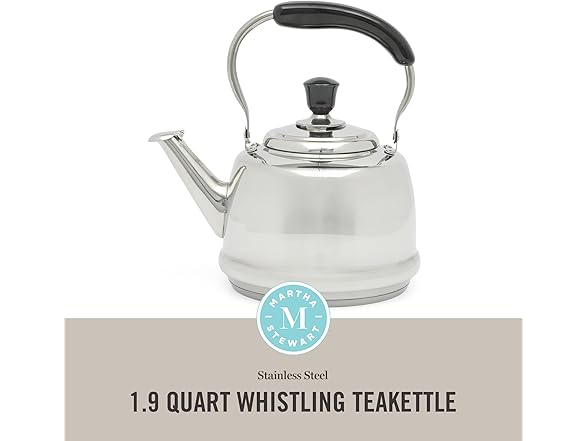 Martha Stewart Kingstree Large 2 Qt Stainless Steel Tea Kettle – Heavy Gauge Durable Whistling Tea Kettle for Stove Top, Easy Pour, Classic Design