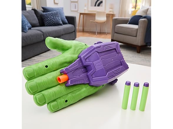 - POWERED BY NERF: The Avengers Hulk Thunderclap Blaster includes 3 NERF darts, with storage for 2 on either side of the blaster