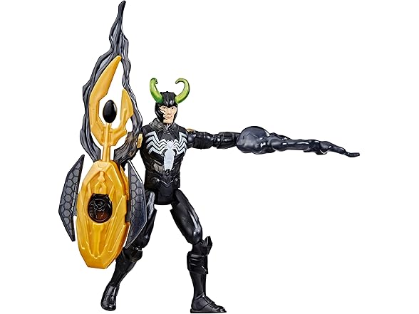 - VENOMIZED BATTLE GEAR: Venomized Loki comes with 2 clip-on gear accessories, including a Battle Gear Scepter that features a button-activated pop-out magic blast, and additional magic blast effect
