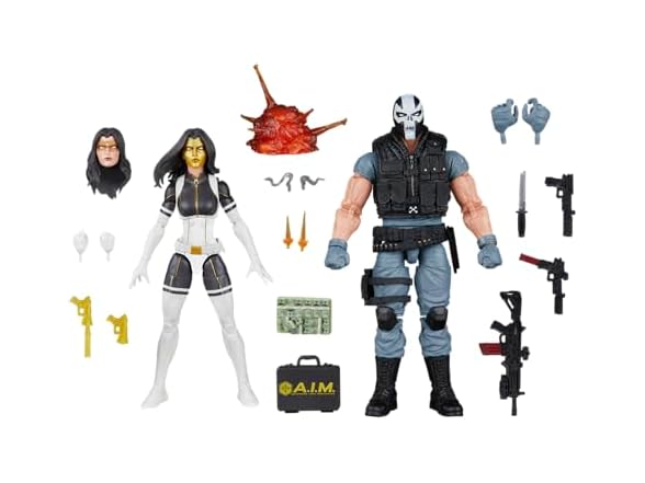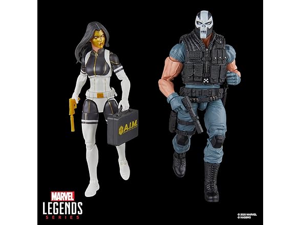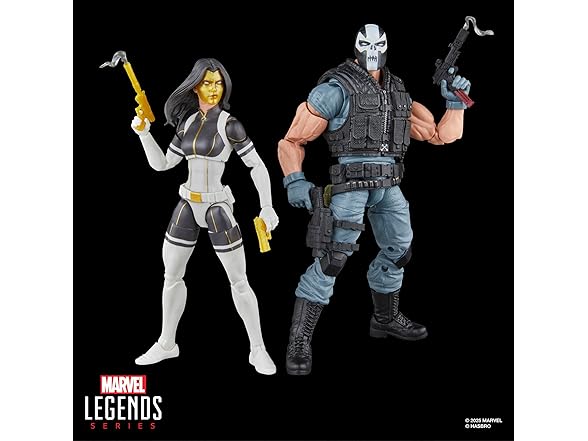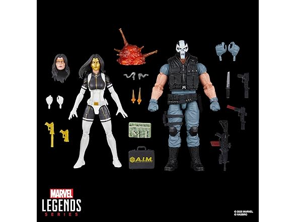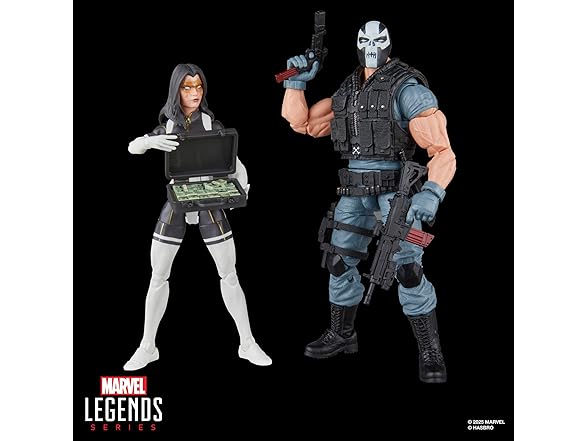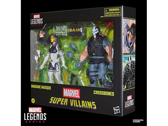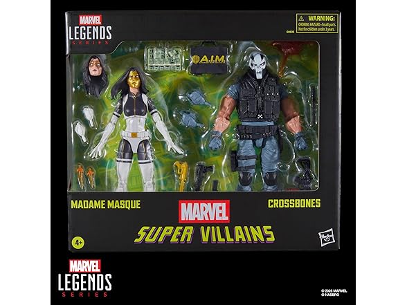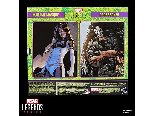 Bring the excitement and wonder of the Marvel Universe to your collection with Hasbro Marvel Legends Madame Masque and Crossbones figures! These collectible figures are detailed to look like the iconic villains from Marvel's Iron Man and Captain America comics. 6-inch scale Marvel figures are fully articulated with poseable head, arms, and legs. Marvel action figure set comes packed with 18 accessories. Madame Masque includes alternate head to swap between classic and modern looks, alternate hands, weapon accessories, “stolen” briefcase with money, 2 blast effects, 2 smoke effects and weapon accessories. Crossbones includes alternate hands, knife, explosion effect, and weapon accessories. Hasbro Marvel action figures' 6 inch scale make them great for posing and displaying in fans' collections. Reimagine Captain America or Iron Man comics-inspired scenes on your shelf with Marvel Legends action figures. Copyright 2025 MARVEL. Hasbro and all related terms are trademarks of Hasbro.