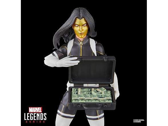 - MARVEL COMICS -INSPIRED ACCESSORIES: Deluxe pack bursting with 18 accessories including alternate head, hands, briefcase with removable stack of bills, blast effects and weapon accessories