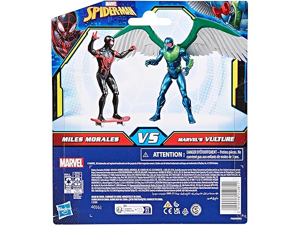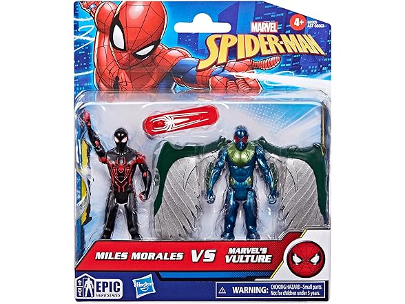 - SPIDER-MAN ACTION FIGURE SET: These 4-inch-scale (10 cm) Miles Morales and Marvel’s Vulture boys & girls action figures feature Marvel comics design and detail