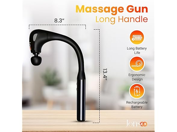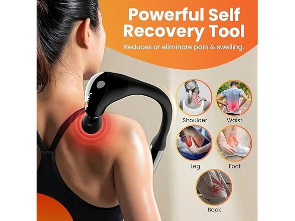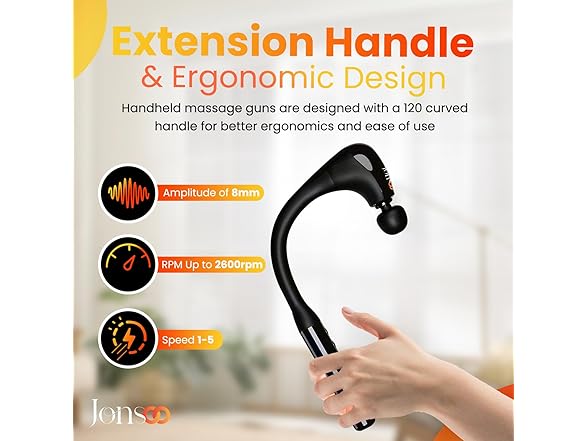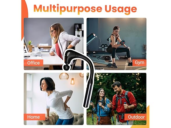 - Long Ergonomic Handle Extension: Reach any pain spot, EVERYWHERE in your body with ease! The long handle design of the massage gun allows you to target hard-to-reach areas such as the back, shoulder, lumber, neck, and other specific points of pain in your body with ease. No spot is too hidden or tricky- Ideal to use at any time of the day and easy to take to work, gym, or travel.