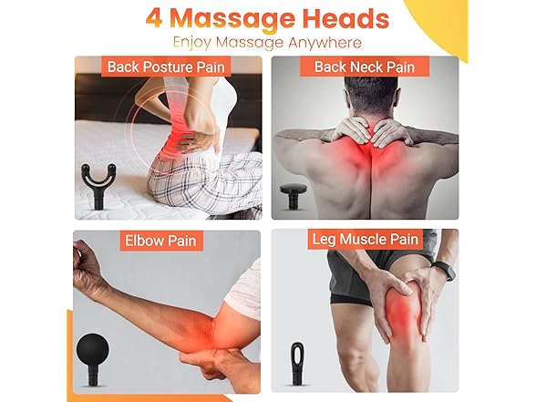- 5 Speeds and 4 Massage Heads: Invigorate your whole body with target massage! The 4 interchangeable massage heads allow you to target all kinds of muscles in your body for an awakening personalized massage experience. With 5 adjustable speeds, there’s the perfect speed for you, whether you need gentle relaxation or intense deep tissue massage.