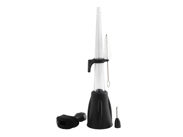 - Includes detachable silicone hood for hanging and storing accessories, cleaning brush, sauce injecting syringe and double-sided silicone basting brush