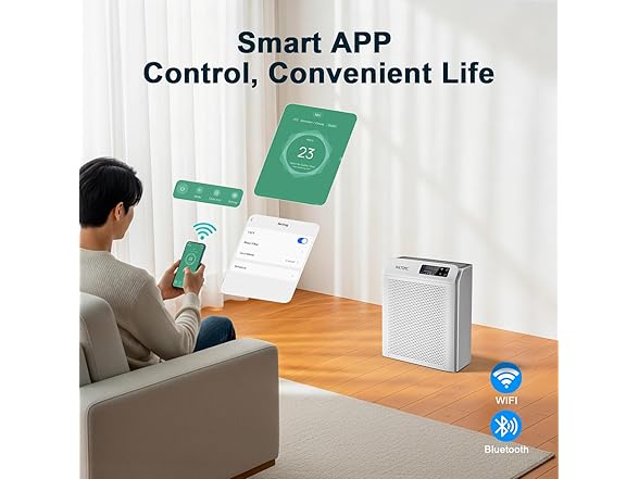 - 【Smart Control Capability】Control your smart air purifiers for home via the APP, command your indoor climate from anywhere. Track live air quality metrics, adjust operation modes, and receive automated filter maintenance alerts—all directly from your phone. Experience adaptive purification control that seamlessly fits your lifestyle. Enjoy complete command at your fingertips, breathe easier every day. (Notes: Long press the "Timer Button" (5s) - WiFi indicator LED flashes - Search "Ganymede" Air Purifier on your phone - Connect APP)
