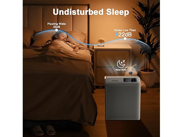 - 【Intelligent Operation Modes】This HEPA air purifier, which comes with 4 Fan Speeds + 2 Modes, allows you to customize performance for your needs and experience tailored air purification. Sleep Mode operates at under 22dB with all lights off, ensuring undisturbed rest. Program your unit with the 2/4/8/16/24-hour timer for energy-efficient operation, ideal for nighttime or leaving home. Added safety comes with the child lock feature, preventing unintended setting changes by children or pets. Effortless control meets quiet power.