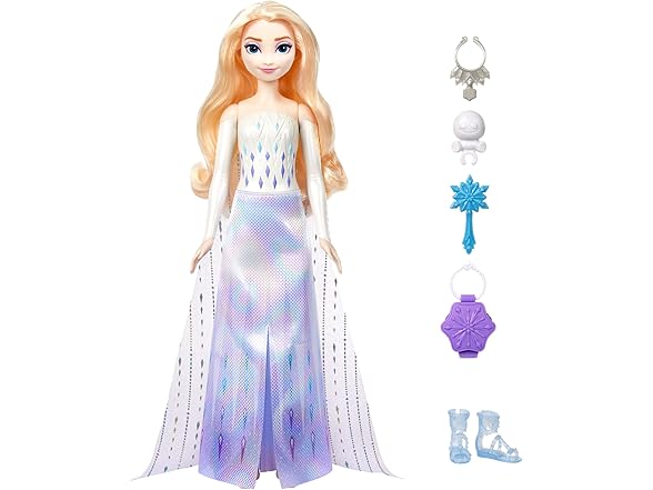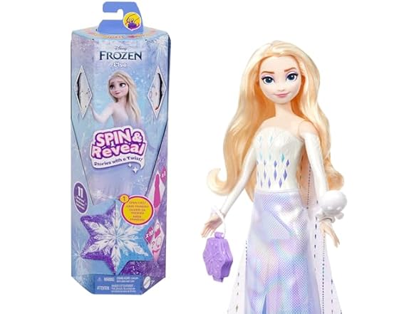 Mattel Disney Frozen Elsa Fashion Doll Set, Spin & Reveal with 11 Surprises Including 5 Accessories, 5 Stickers & Play Scene, Inspired by the Movie