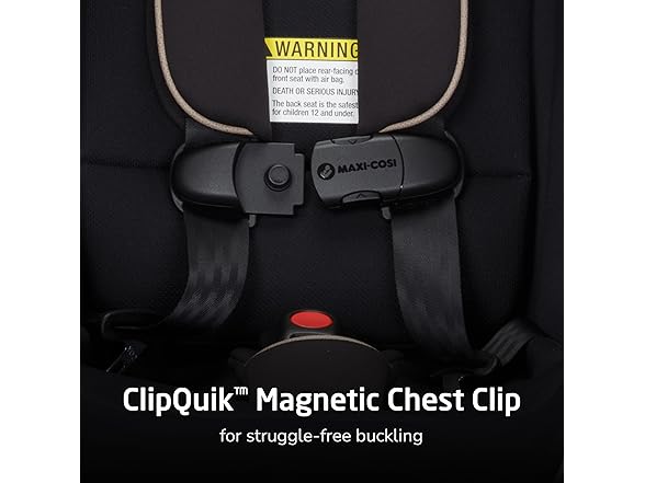 - EASY IN-AND-OUT ClipQuik is our magnetic chest clip on the carseat that you can open 1-handed for easier buckling and unbuckling.