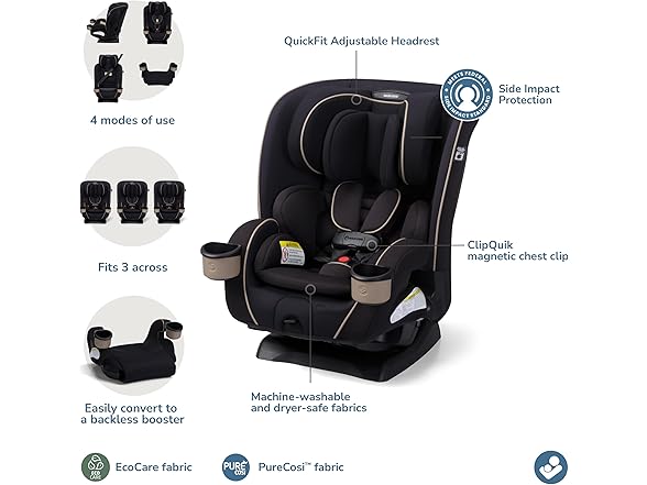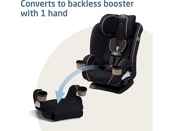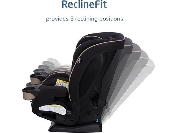 - DESIGNED TO MAKE TRANSITIONS SWIFT AND SIMPLE ReclineFit provides 5 reclining positions you can change 1-handed for little one’s comfort and a secure fit in your car. Intuitive 1-hand release converts this all-in-one into a backless booster in seconds.
