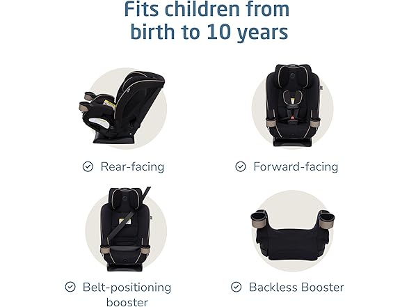 - KANI 4-IN-1 CONVERTIBLE CAR SEAT 4 modes of use: rear-facing infant car seat (5–40 lbs., 19"–40"), forward-facing carseat (30–65 lbs., 34.4"–49"), belt-positioning booster (40–100 lbs., 43.4"–52"), backless booster car seat (40–100 lbs., 43.4"–57").