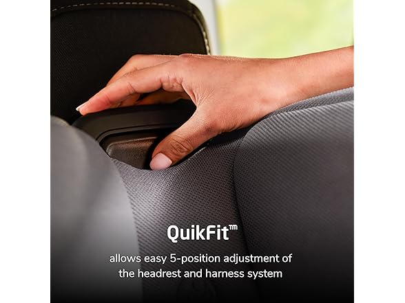 - FAST, 1-HANDED HEIGHT ADJUSTMENT Customize the fit for your growing child with ease. QuikFit is our integrated headrest and harness system made to adjust swiftly, so you can set the proper position and get on your way. No rethreading the harness needed.